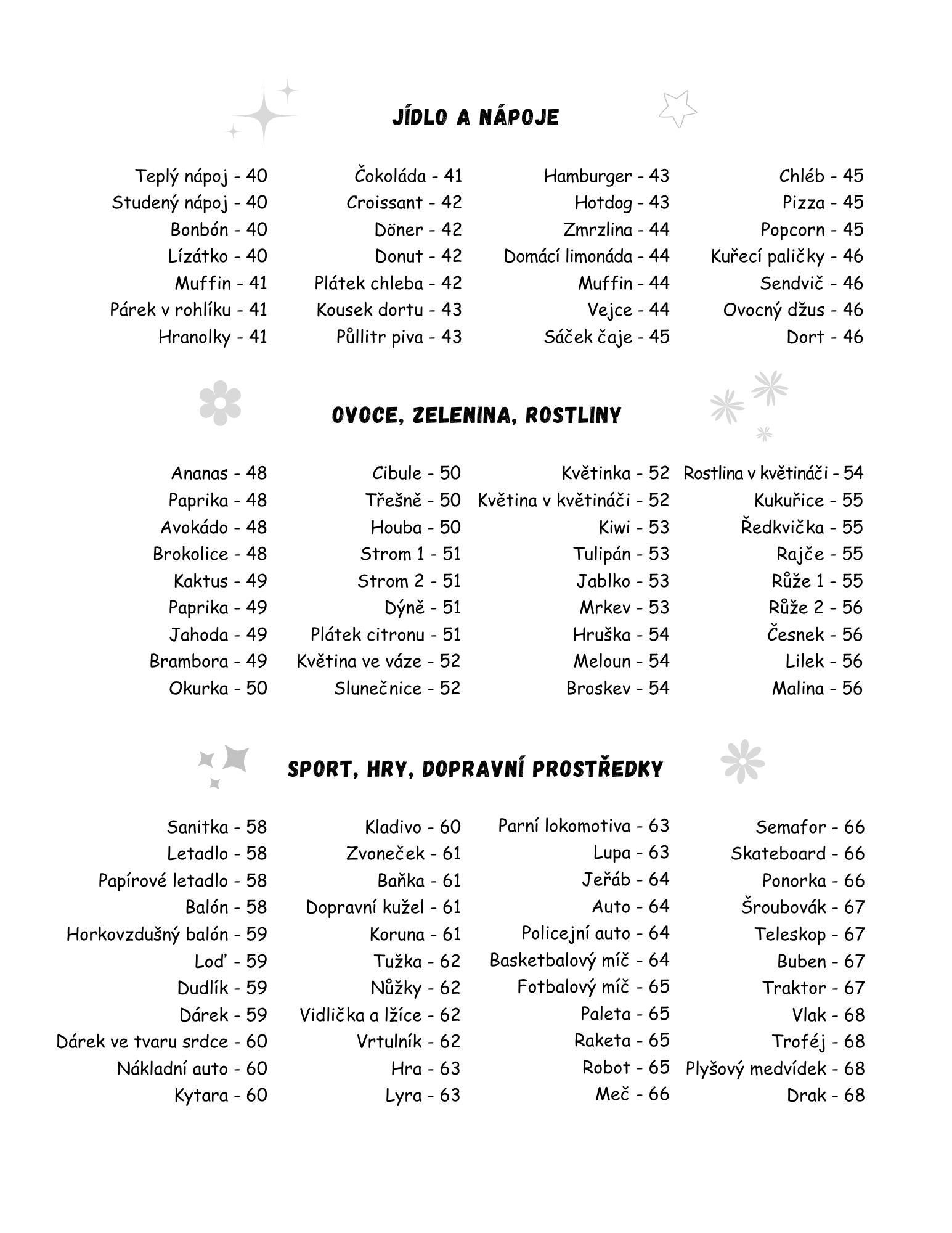 🖌️ Kresby jsou rozděleny do tematických kategorií: